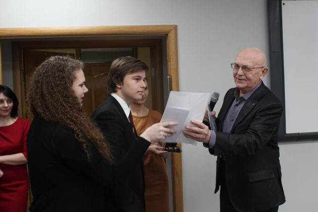 Гран-При конкурса получил Василий Нацентов – учащийся МКОУ Каменностепная СОШ им. А. М. Иванова Таловского муниципального района Воронежской области (педагоги-наставники: И. Я. Юршина, Е. В. Нацентова) за работу «Воробьинообразные птицы Каменной Степи: прошлое и настоящее». Награду вручала проректор по учебной работе Воронежского института высоких технологий Светлана Михайловна Шляхова.