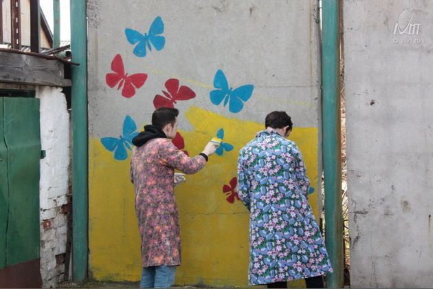 Также в рамках проекта "Краски счастья" была раскрашена серая бетонная стена на территории интерната.