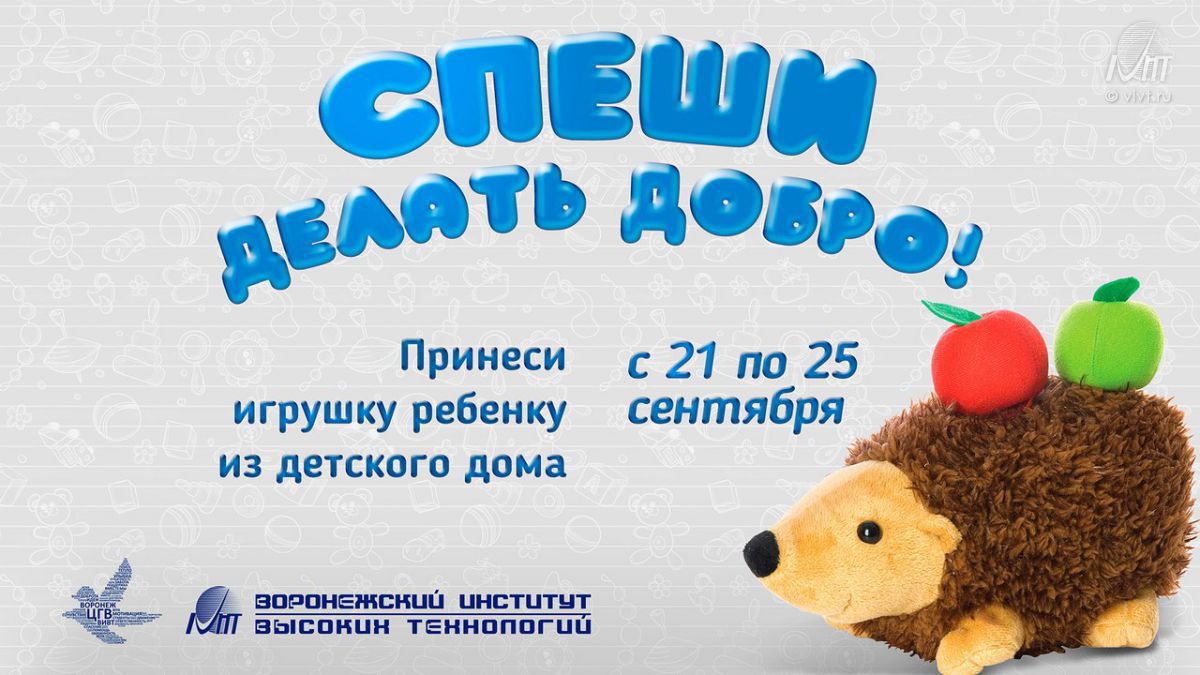 Дорогие друзья, с 21 по 25 сентября в Воронежском Институте Высоких Технологий будет проходить благотворительная акция "Спеши делать добро".